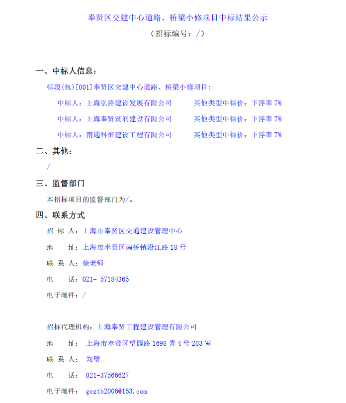 上海奉賢工程建設管理有限公司 |